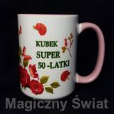 Kubek o pojemności 450 ml. z napisem "Kubek Super 50-latki.."będzie wspaniałym prezentem na JEJ urodziny...... Polecamy !!!!
