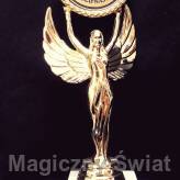 Złoty Wiktor z grawerem za rolę Super Świadkowej o wysokim połysku z grawerowanym napisem i marmurową podstawką,