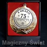 Złoty medal " Z okazji 75 urodzin ". Medal wykonany jest z odlewanego stopu metalu imitującego złoto. Prezentuje się świetnie i solidnie. Me...