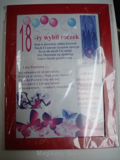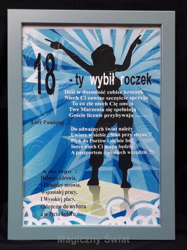 Ramka na 18-te urodziny,MOŻNA WSTAWIĆ WŁASNY TEKST,IMIONA , DATĘ
