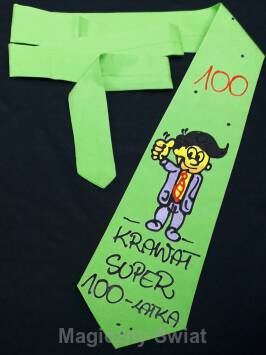 Krawat ręcznie malowany na 100 urodziny z napisem:
