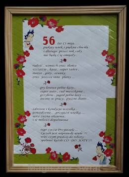 Ramka z życzeniami na 56 urodziny, różne wzory / kolor.