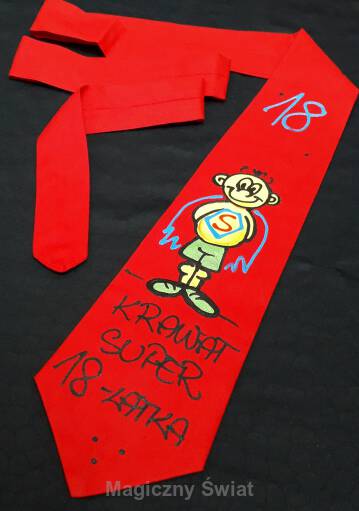Krawat ręcznie malowany na 18-te urodziny z napisem: